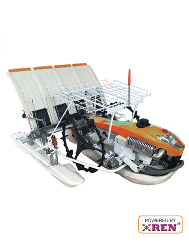 BHEEM TransplanterBMP 350 is a self-propelled, Walk-behind, compact, Light in weight, robustly built paddy transplanter. The Transplanter Is matted with a Reliable REN 5 hp Petrol Engine and durable Shaft Drive system. It is equipped with 3 speed transmission for 4 rows transplanting at one time. The hydraulic auto levelling polypropylene float system allows for uniform planting of paddy seedlings without sinking and smooth movement in soft fields .It is easily manoeuvrable with the help of turn clutches and thus reduces operator fatigue.